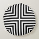 Black & White Striped Angular Box Repeat Pattern Round Pillow
