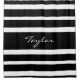 This simply classy shower curtain has a black and white stripe design with room for your name in scrawled white cursive. It's an elegant, modern design that will add a touch of personalized, upscale elegance to your bathroom decor.