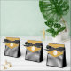 Above the ribbon, the mustard yellow background provides ample space for personalization with a short text or the name of a person or company in crisp white uppercase font. The colour combination exudes elegance, with a touch of luxury, making it effortlessly fashionable, yet modern. This magnificent design is featured on a set of 10 favour boxes, perfect for elegantly wrapping gifts for weddings, birthdays, corporate events, and more.