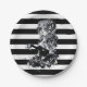 Black & White Striped Pretty Sugar Skull Girl Paper Plate