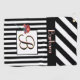 This beautiful and sophisticated design feature unique three-colour lettering for the Monogram and First Name -- look closely and you will for yourself. That is a part of what makes this almost one-of-a kind -- for yourself or as a special gift. Black and White Stripes -- with a monogram and First name -- and a floral accompaniment. Simple / sophisticated / elegant -- and versatile. Any design questions or special requests, just email: charmdesignstudio@rcn.com and we'll be happy to assist.