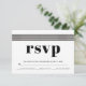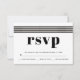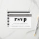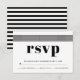 Black white stripes elegant modern wedding RSVP card. It showcases a stripe with a circle with your initials and two little hearts and your text. The black includes a black and white striped pattern.