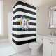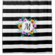 Beautiful shower curtain with floral watercolor wreath on black & white striped background. Customize the monogram by choosing from many wonderful fonts.