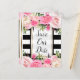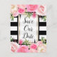 Black White Stripes Pink Floral Save The Date Announcement Postcard
