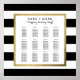 Modern large square wedding seating chart / seating plan poster with black & white stripe background with gold foil effect frame - template for 12 tables / 120 guests, can be customized further for any number of guests.