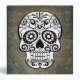 Trendy black & white sugar skull with a slate background. Sugar skull has an eye on the forehead.