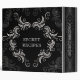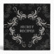 Black and white swirls with swirly frame. Custom text on front back and spine. Secret Families recipes Avery binders.