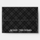Custom text on Stationery Mailing Accessories Envelopes for Holidays season. Customize Lovely festive elegant Christmas grey black white plaid pattern.