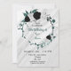Black white teal blue wreath birthday party invitation