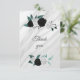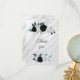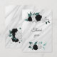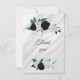 elegant black white and teal blue flowers with some beautiful leaves on a silver grey marble background thank you card