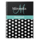 Black White Teal Green Monogram Script Polka Dot Notebook