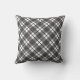 A throw pillow with an original black and white simple glen-inspired horizontal plaid pattern with thin stripes.