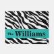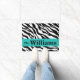 Black White Turquoise Zebra Skin Name Personalized Doormat