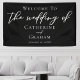 Bold and stylish, our minimalist winter wedding collection features elegant cursive typography for your modern event. Welcome your guests with an elegant evening wedding banner with simple white script on a black background.