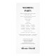 Experience the elegance of a chic and understated wedding program with a minimalist touch. This beautifully designed program showcases a clean white background, allowing the typography to take centre stage. On the front, you'll find all the essential details of the ceremony, accompanied by a sleek vertical line on the left side. The couple's names gracefully extend towards the upper part of the program, adding a personalized touch. Flip it over, and the back reveals the party details, along with a heartfelt "Thank You" message that will leave a lasting impression on your guests.