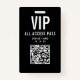 Template with QR code option VIP All Access Custom Concert and Music Festival Badge. Black White VIP All Access Pass QR Code Concert. Replace with your concert name, location and date. Use this photo or replace with your own.