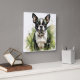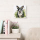 BLACK & WHITE WATERCOLOR BOSTON TERRIER DOG SQUARE WALL CLOCK