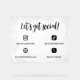 Translucent white acrylic small business sign for promotional use to share your social media and website address with your customers and clients with Let's get social! in a black script, social media icons, and your social media handles in modern fonts against a splash of white watercolor that's a little transparent at the edges. Promotional social media acrylic sign for your small business in black and white. Acrylic social media sign to promote your small business in a pretty combo white and black.