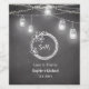 Black White Wine Label with Mason Jar String Lights on a Blackboard/Chalkboard background.