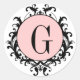 Black White Wedding Monogram G Damask Pink Label