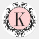 Black White Wedding Monogram K Damask Pink Label