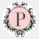 Black White Wedding Monogram P Damask Pink Label