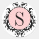 Elegant Parisian Chic Pink Black and White Monogram Stickers with Damask Design. Art and Design by Elke Clarke ©2010.Customize with your monogram initial and wedding colours.