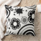 Black & White Whimsical Flowers, Circles, Splatter Throw Pillow