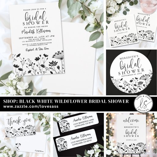 Simple Chic Black White Wildflower Bridal ShowerDesigned by Jo P.