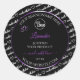 Make a lasting impression with this elegant and luxury product label design featuring a black and white word cloud border with a shimmery purple frame.