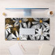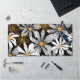 Black, White, Yellow Elegant Daisy Floral Abstract Desk Mat