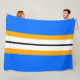 Black White Yellow Racing Stripes On Bright Blue Fleece Blanket