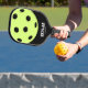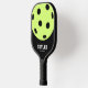 Unique and fun custom-printed personalized pickleball paddle with huge oversize bright neon yellow pickleball ball icon design with your name in a sporty classic font and optional phone number or contact information in small text.