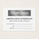 Elegant and minimalist certificate of authenticity in black and white to which you can add your name or business name and your logo too.