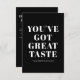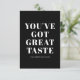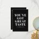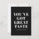 Small business black and white you've got great taste thank you card. Customize text, colours, fonts to your desired ones.