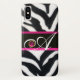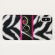BLACK WHITE ZEBRA FUR FUCHSIA PINK GEM MONOGRAM, Case-Mate iPhone CASE