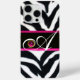 BLACK WHITE ZEBRA FUR FUCHSIA PINK GEM MONOGRAM, Case-Mate iPhone CASE