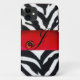 BLACK WHITE ZEBRA FUR RED GEM MONOGRAM, Case-Mate iPhone CASE