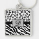 Black White Zebra Leopard Skin Monogram Keychain