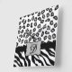 Black White Zebra Leopard Skin Monogram Square Wall Clock