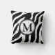 Elegant and modern black and white cute animal print zebra pattern custom monogram decorative throw pillow. Fully customizable, add your own initial for a truly unique home decor item.