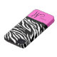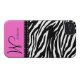 Elegant Black / White Zebra Pattern with personalized monogram and hot pink background.. Add your name and initial.