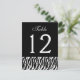 Make sure your guests find their way to their tables with these elegant black and white zebra print themed wedding table cards. The size is 4.25 x 5.6", and will have a gloss finish. You'll need wedding card holders so the cards will stand upright on your table. Numbers 1-12 have already been designed for your convenience, and you can also choose to customize with any number.