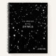 The phrase, "It's written in the stars" is surrounded by astronomical zodiac constellations. Your name is in the bottom right corner. The black and white journal is trendy and modern.
