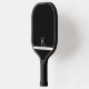 Modern and simple understated black and white monogram initial design on a personalized pickleball paddle in a classic minimal, professional-looking thin sans-serif font for your name letter, and optional contact information or phone number.