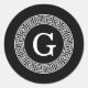 Black Wht Greek Key Rnd Frame Initial Monogram Classic Round Sticker