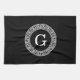 Black Wht Greek Key Rnd Frame Initial Monogram Kitchen Towel