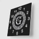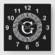 Black Wht Greek Key Rnd Frame Initial Monogram Square Wall Clock