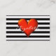Black Wht Horiz Stripe Red Metallic Heart Monogram Business Card