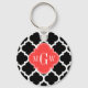 Black Wht Moroccan #5 Coral Red 3 Initial Monogram Keychain